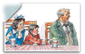 Минька вместе со своей сестрёнкой Лёлей очень любил ужинать вместе со взрослыми. Но ребятишки не просто сидели рядом, а неизменно пытались острить и шутить, чтобы показаться папиным и маминым друзьям очень остроумными.