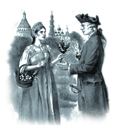 Прошло два года после смерти отца Лизина. Луга покрылись цветами, и Лиза пришла в Москву с ландышами. Молодой, хорошо одетый человек, приятного вида, встретился ей на улице. Она показала ему цветы — и закраснелась. «Ты продаешь их, девушка?» — спросил он с улыбкою. — «Продаю», — отвечала она. — «А что тебе надобно?» — «Пять копеек». — «Это слишком дешево. Вот тебе рубль». — Лиза удивилась, осмелилась взглянуть